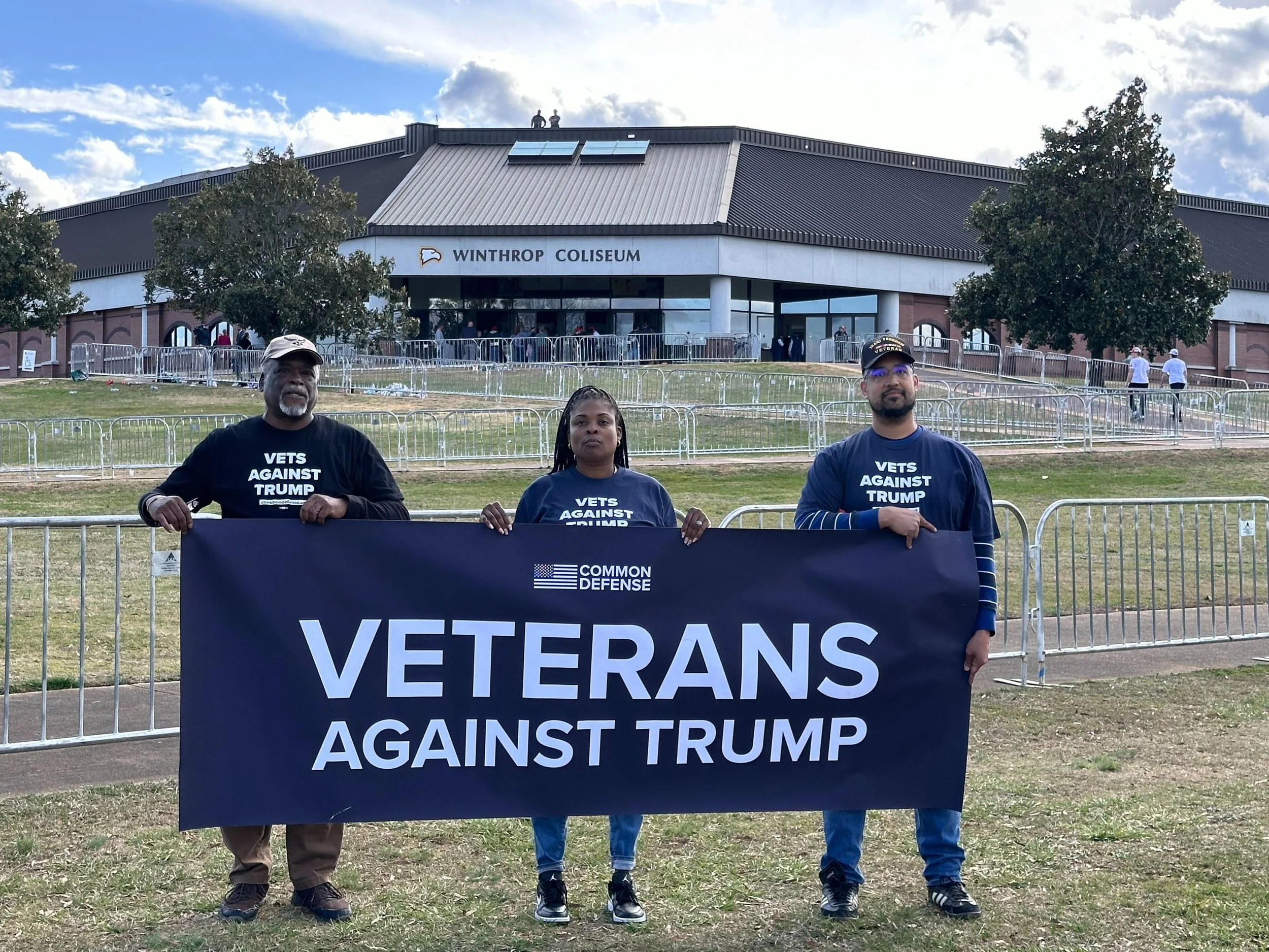 ROCK HILL, SOUTH CAROLINA — Members of Common Defense, the nation’s largest grassroots veteran organization, convened at Winthrop Coliseum at Winthrop University for a protest against former president Donald Trump’s campaign for re-election. Former president Trump hosted this event as South Carolina voters will go to the polls on Feb. 24 to help pick a Republican candidate for president.